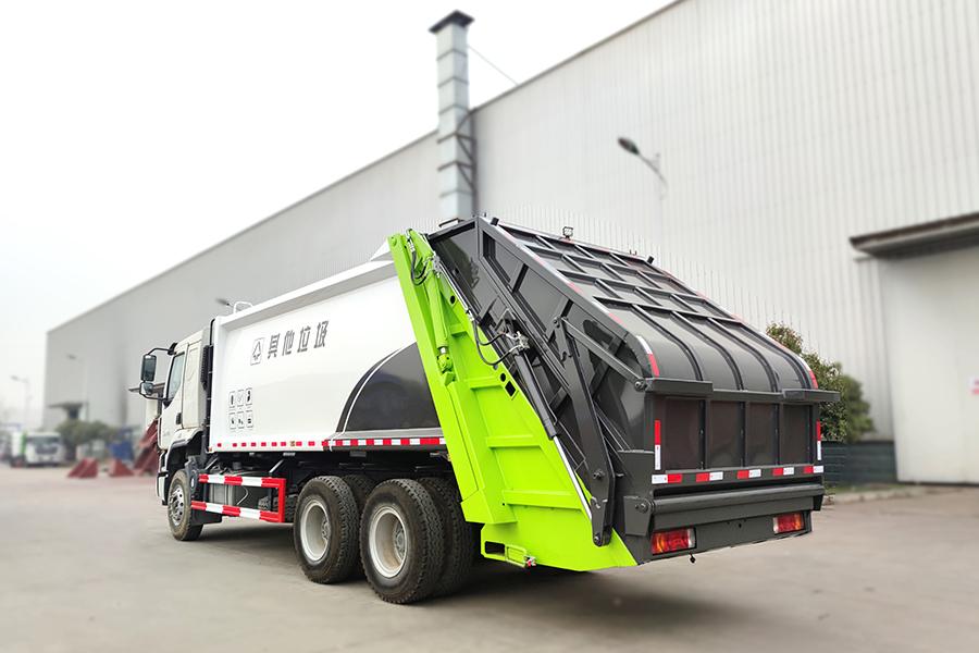 壓縮式垃圾車由密封式垃圾廂、液壓系統(tǒng)、操作系統(tǒng)組成。整車為全密封型,自行壓縮、自行傾倒、壓縮過程中的污水全部進入污水廂,較為徹底的解決了垃圾運輸過程中的二次污染